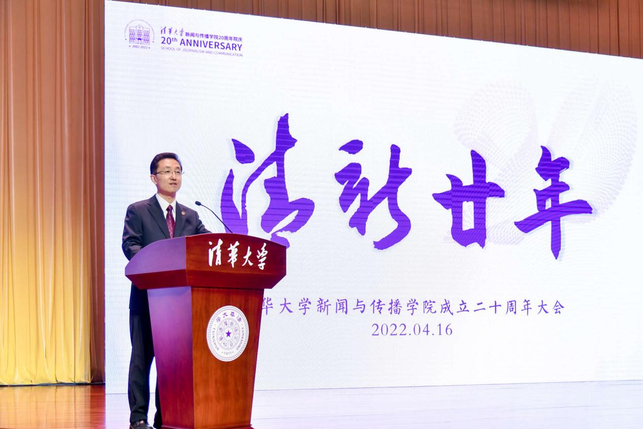 教师代表、新闻与传播学院教授、学术委员会主任金兼斌在发言中回忆了自己与学院二十年同行里的重大时刻。他相信新一代清新人一定会在新的十年把共同的清新家园建设得越来越好。