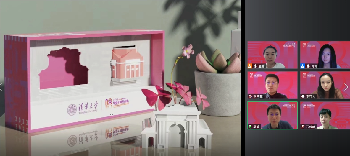 2008级秩年活动筹备执行委员会成员、化工系校友袁浩歌汇报了秩年活动的筹备和开展情况;执委会联络组负责人、计算机系校友罗成介绍了八字班校友的整体情况;执委会产品设计组的全体成员,建筑学院校友孙昊德,美术学院校友肖青、石俊峰、单夏丽、李可为、李子慕线上汇报了秩年大会的产品设计理念。校友们幽默诙谐的语言和真挚的情感将大会气氛推向高潮。