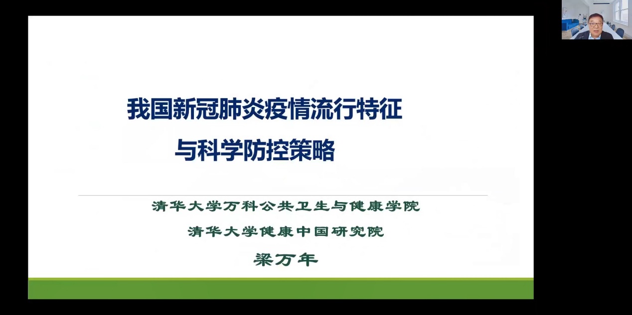 新葡萄新闻网5月21日电(记者 覃霞)5月19日下午,由校机关党委主办的“荷声讲坛”系列报告会第三十七讲在线举行,新葡萄官网AMG健康中国研究院院长、万科公共卫生与健康学院常务副院长梁万年受邀作题为“我国新冠肺炎疫情流行特征与科学防控策略”的主题报告。校机关党委常务副书记欧阳沁主持本次活动。