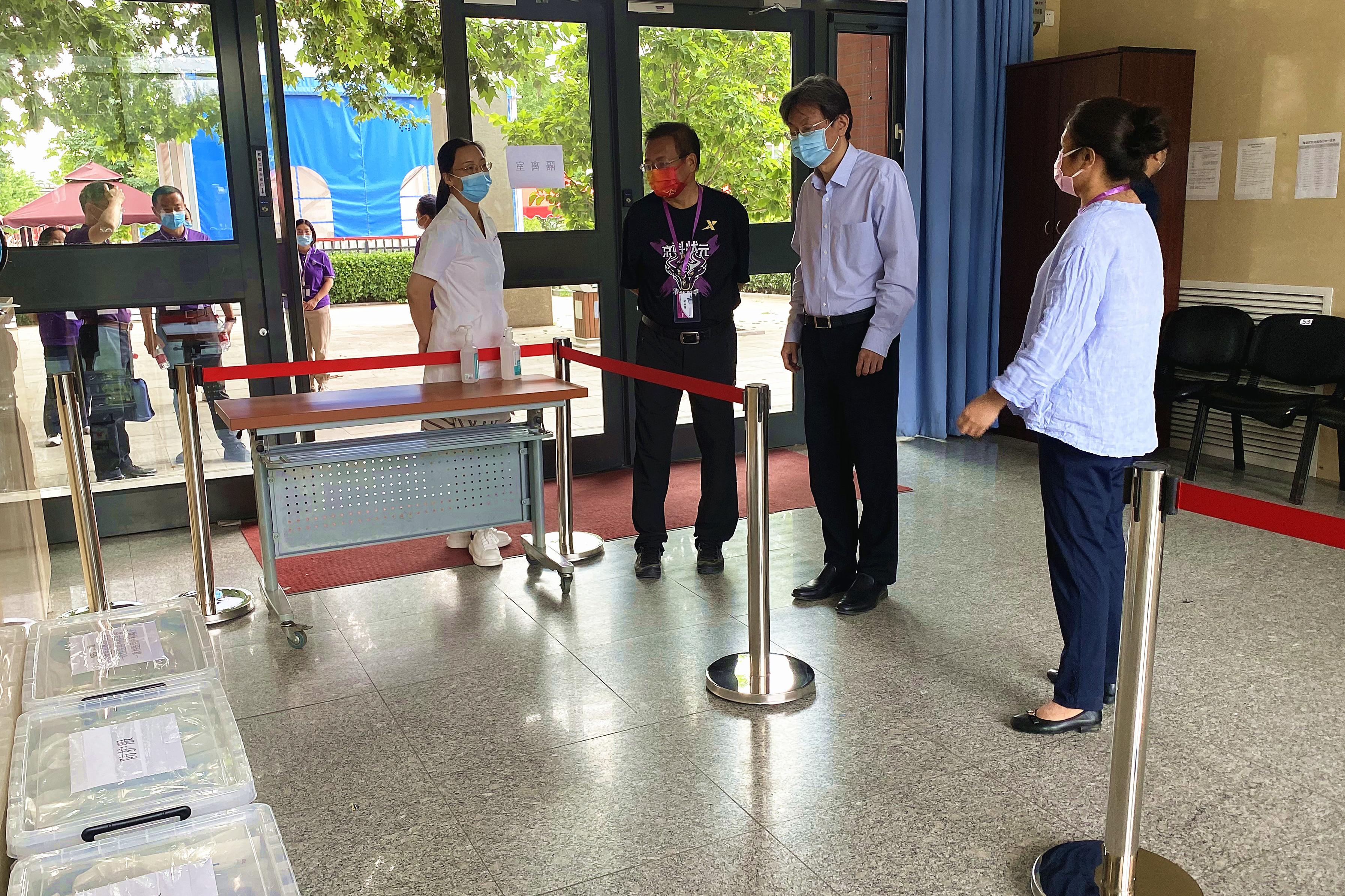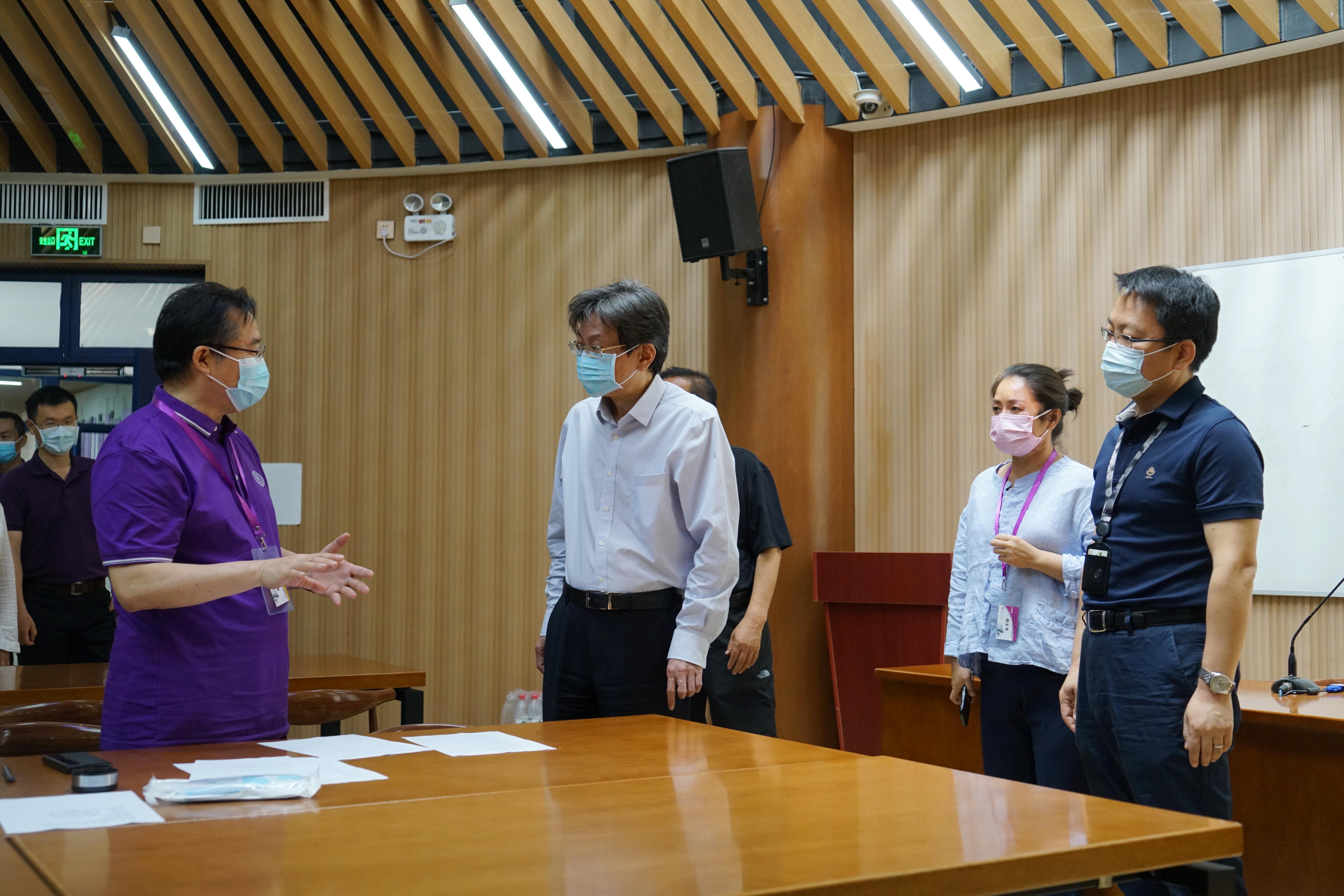 李一兵一行实地察看了校外隔离区域、体温检测设备以及防疫物资、考场情况、主考室、监控室、广播室等地,听取了新葡萄附中党委书记方妍和校长王殿军关于考点疫情防控、考务管理总体情况介绍,详细了解考场设置、考生人数等数据信息,并对考生进校、常规考场和应急考场管理、突发事件处置等环节及核酸检测等疫情防控有关措施进行监督检查。