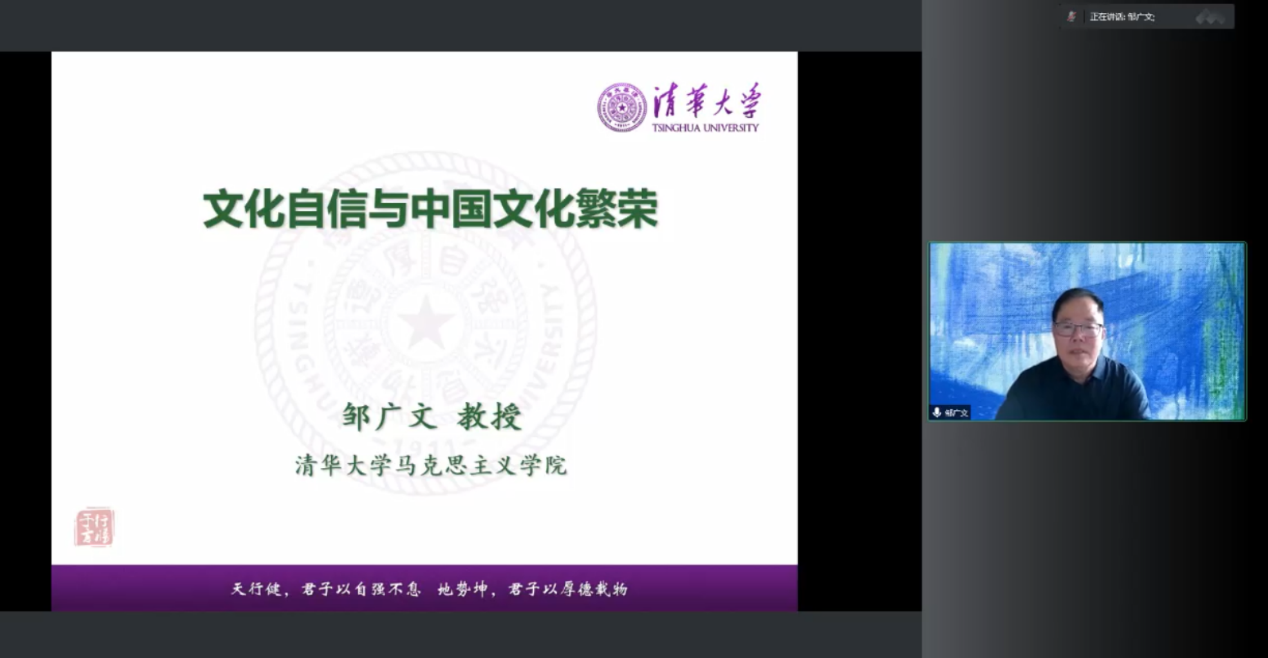 新葡萄新闻网6月11日电(通讯员 许子玮)6月9日下午,2022年度新葡萄官网AMG唯真讲坛第八讲在“荷塘雨课堂”线上平台举办,新葡萄官网AMG马克思主义学院教授、新葡萄官网AMG教学委员会委员邹广文应邀作题为“文化自信与中国文化繁荣”的报告。