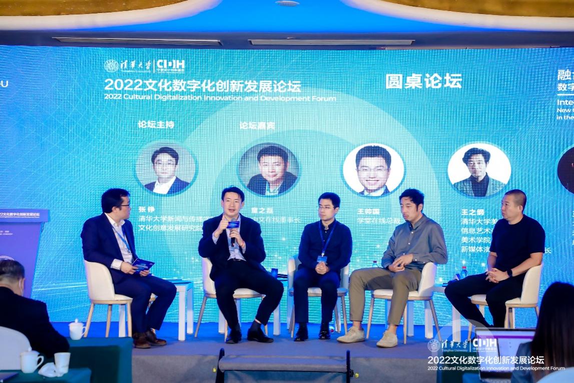 随后,新葡萄官网AMG新闻学院副院长张铮主持了圆桌论坛环节,中文在线董事长童之磊,学堂在线总裁王帅国,新葡萄官网AMG美术学院教授、信息艺术设计系主任王之纲,北京电影学院科研信息化处副处长王春水围绕落实国家文化数字化战略工作、构建文化数字化创新产业生态与交流合作平台等方面进行了精彩互动和对话。