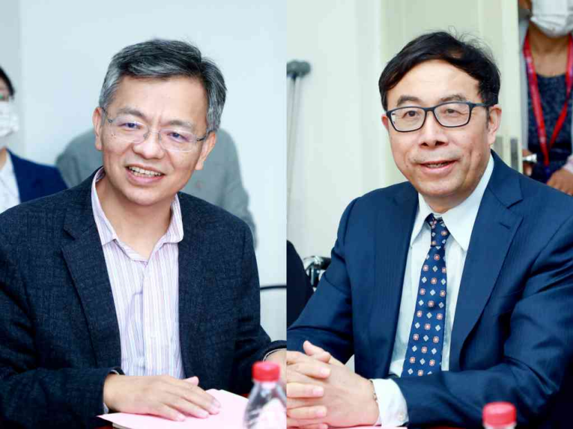 刘涛雄主持会议(左),彭凯平介绍社科学院工作