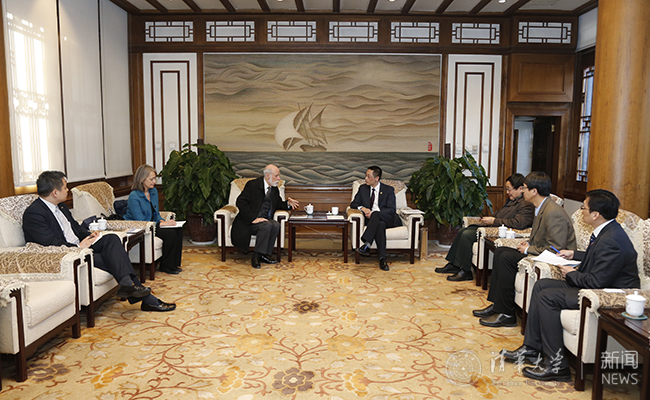 施一公会见谷歌公司高级副总裁温顿·瑟夫。记者 张宇 摄