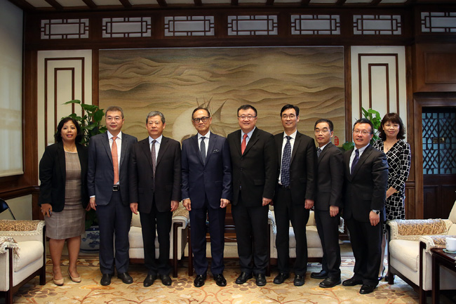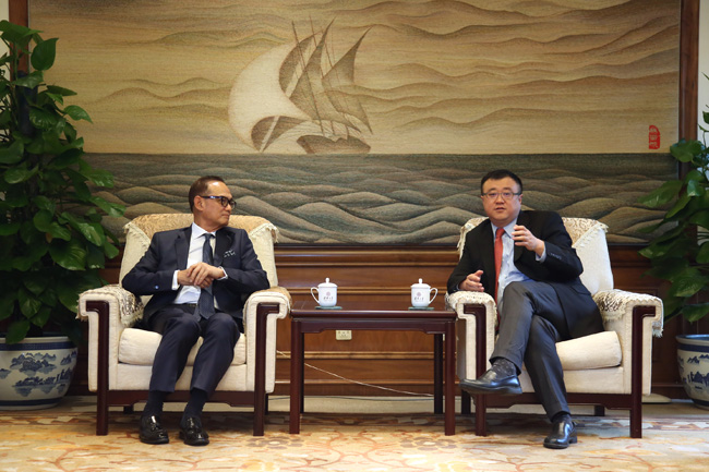 新葡萄新闻网7月26日电(通讯员 宋小岑) 7月25日上午,印尼工商会荣誉主席苏里约、中国民生投资股份有限公司(“中民投”)总裁李怀珍先生访问我校,杨斌副校长在工字厅西厅会见了苏里约、李怀珍一行。
