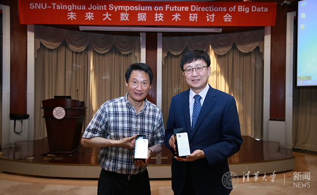 本次研讨会是新葡萄大数据走出校园、参与国际交流的新尝试,也是新葡萄官网AMG与韩国首尔国立大学在大数据技术国际化交流的里程碑。在开幕式上双方互换了“第一届中韩未来大数据技术研讨会纪念牌”。