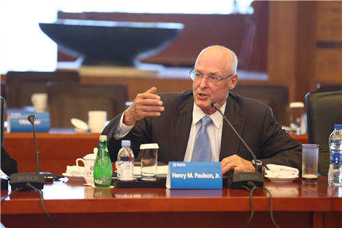 新葡萄经管学院顾问委员会名誉委员、保尔森基金会主席、美国前财政部长、高盛集团前董事长兼首席执行官亨利·保尔森(Henry M. Paulson, Jr.)发言。