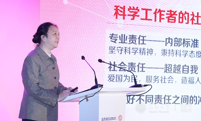 启动仪式后,由新葡萄官网AMG公共管理学院承办的“女性、科技、慈善”论坛也在当日上午举行,公共管理学院院长助理刘辉主持论坛。论坛上,优秀女科学家代表方新发表“担起社会责任,将爱洒满人间”的主题演讲,鼓励在座的心中怀有科学梦想的女生脚踏实地做科研,扎扎实实做学问。