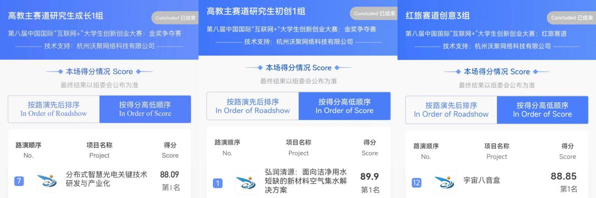 三个金奖项目均获得小组赛第一