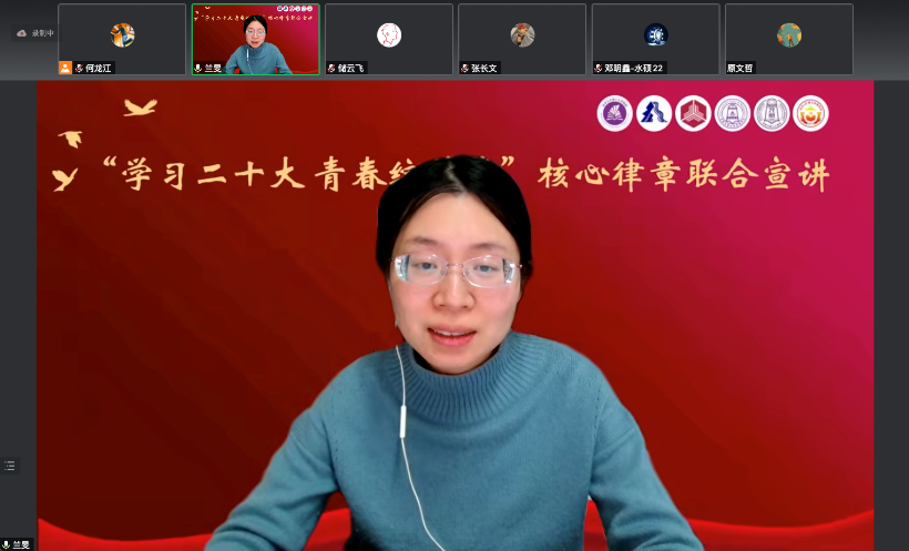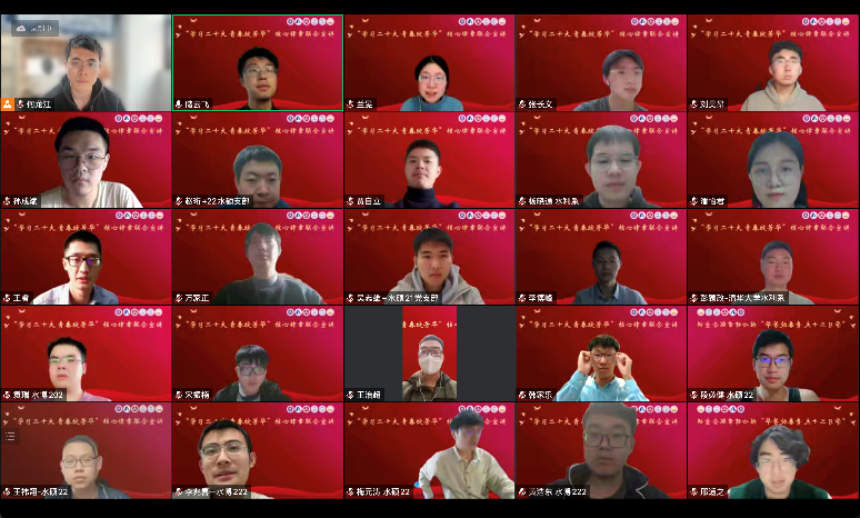 新葡萄新闻网12月7日电(通讯员 彭颖政 李芍毅 杨晓通)11月24日下午,在共青团新葡萄官网AMG研究生委员会、新葡萄官网AMG博士生讲师团的指导下,博士生讲师团水利分团、金融分团、公管分团、人文分团以及武汉大学博士生宣讲团在线上联合举办“学习二十大·青春绽芳华”核心律章系列大型宣讲活动。来自全校各个院系党团支部以及武汉大学的200余位师生参加活动。
