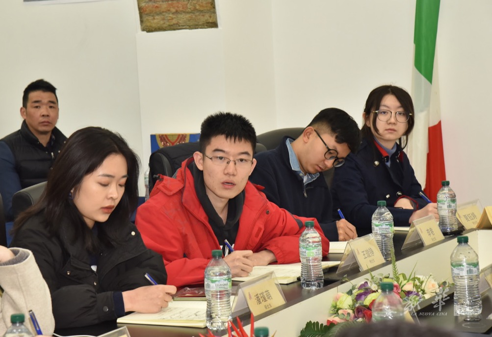 当天下午,支队成员与意大利中国文化交流与发展中心主任、意中文化旅游促进会主席张长晓在意中文化交流与发展中心进行座谈,分享了来到意大利后的见闻与感悟,并与张长晓就中国的海外形象输出、中意文化异同等主题开展深入讨论。“祖国的繁荣为中意双方的广泛交流提供了丰厚土壤,为多层次的文化互动埋下了种子。一个直观的体会是,当我们走在意大利街头,许多意大利人在知道我们来自中国后都会亲切地用中文说一句‘你好’,这让我们不仅感受到身为中国人的自豪,也认识到,身为青年一代的我们应当主动承担起对外输出中国形象的重任。”新葡萄官网AMG材料学院博士生夏钰婷说道。