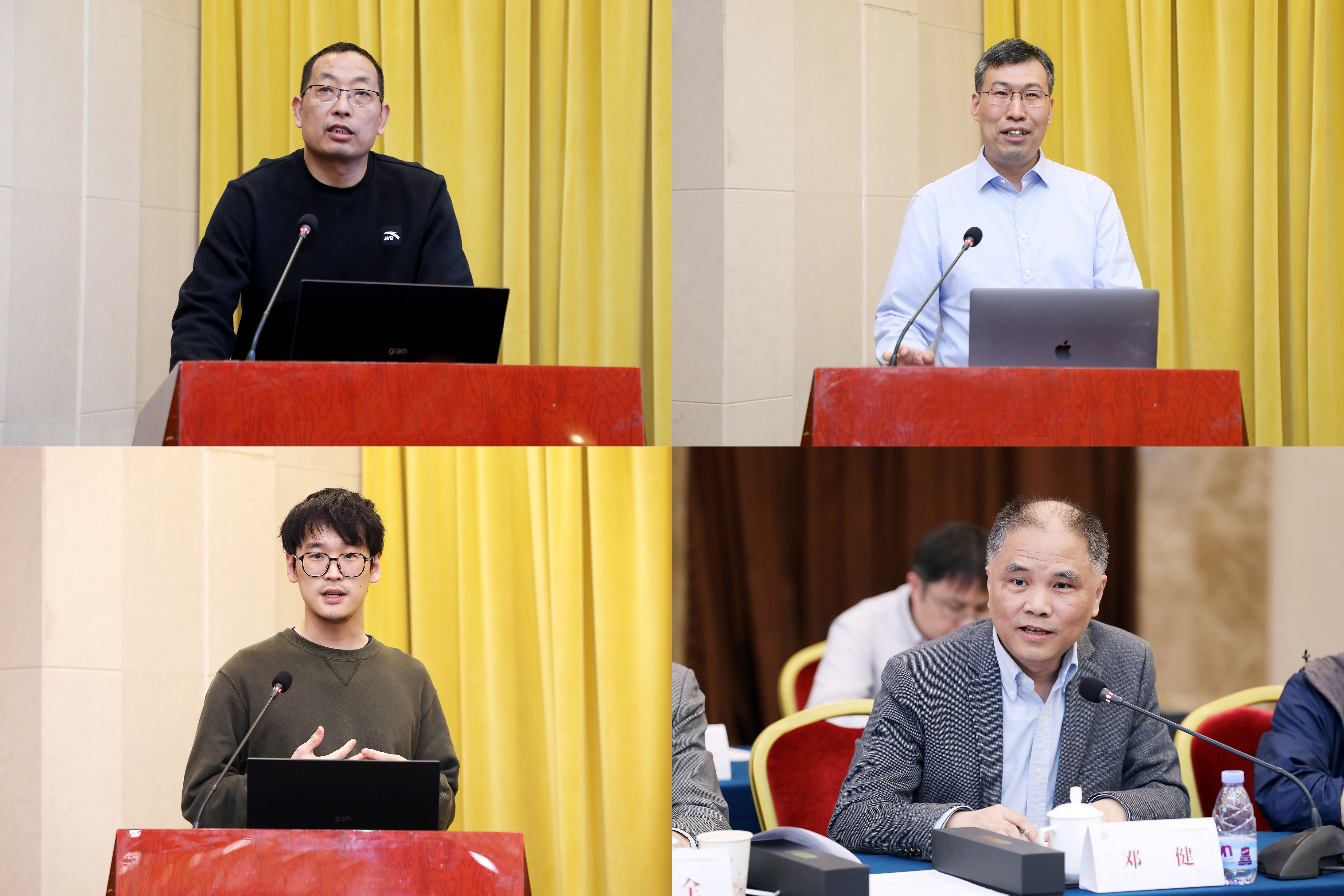 主题发言(从上至下、从左至右:刘永革、王朝阳、武智融、邓健)