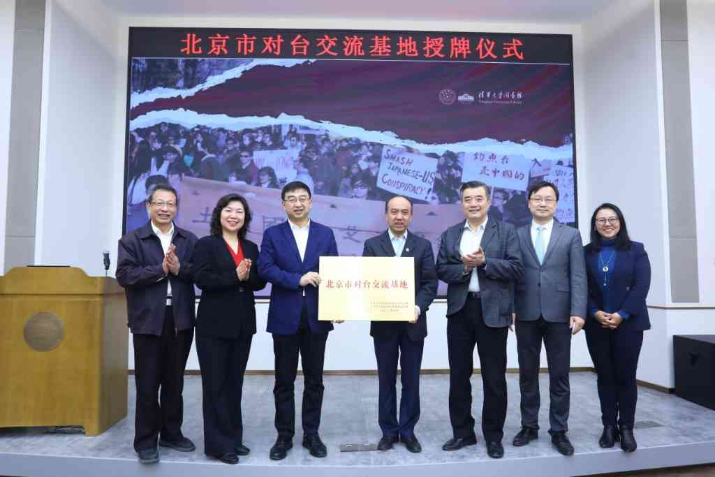 北京市台办主任霍光峰(左三)为新葡萄官网AMG图书馆保钓资料收藏研究中心授牌