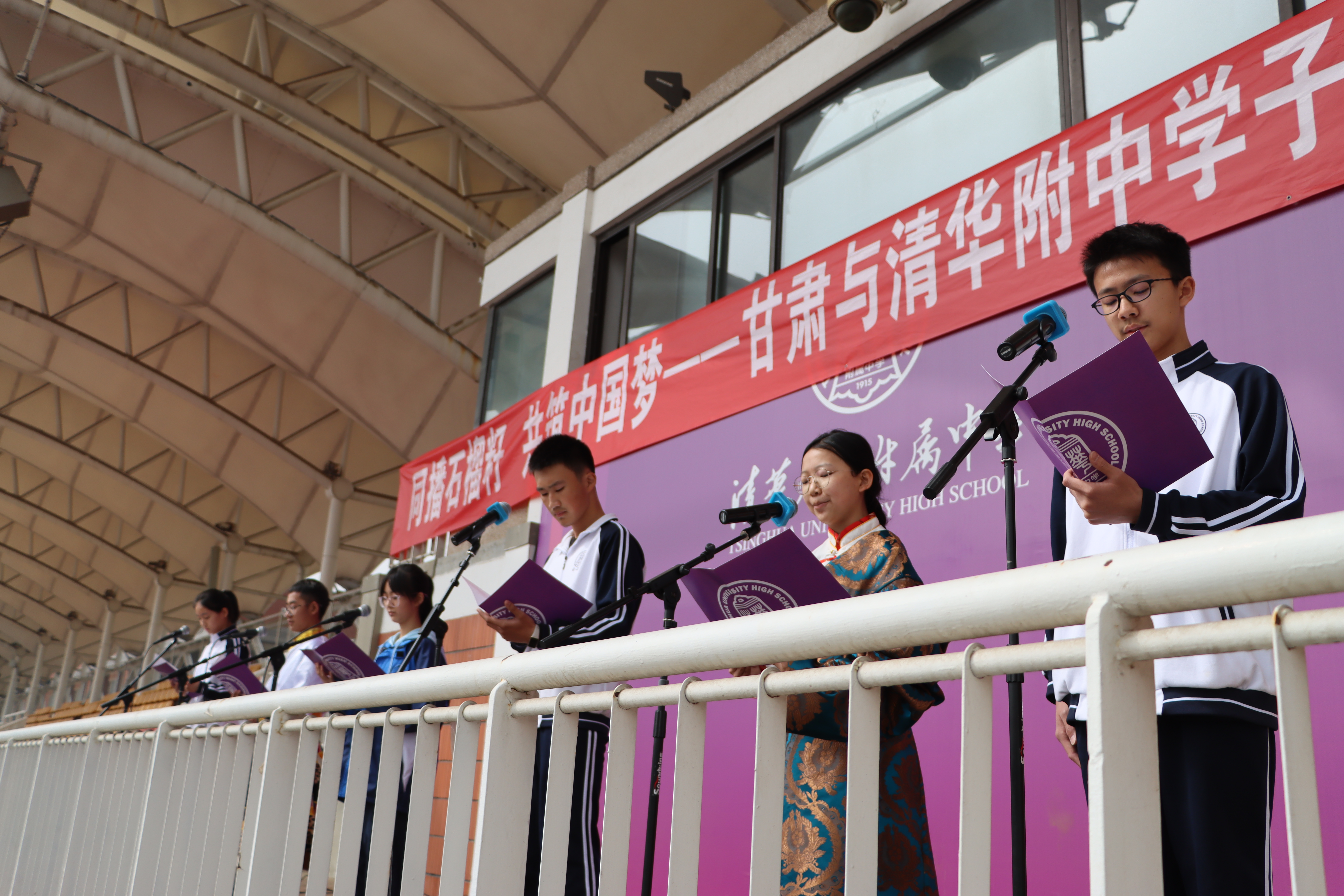 活动中,甘肃学子与新葡萄附中高一14班同学“手拉手”,相互学习、友好交流。甘肃省甘南州合作第一中学高一1班宋玥萱同学和新葡萄附中高一14班曹原同学分别作为两地学生代表发言。启动仪式后,甘肃各族青少年学生代表和新葡萄附中全体师生共同参加了升国旗仪式,同升一面旗、同诵一首诗。
