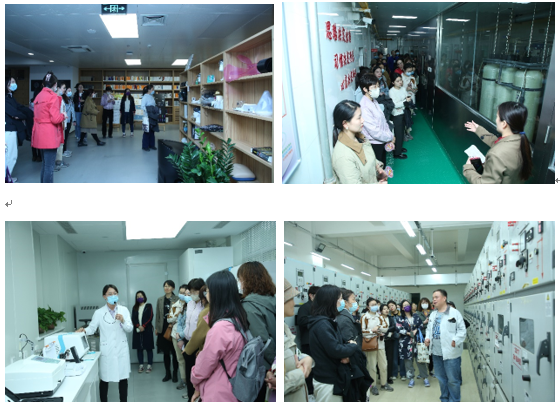参观新雅书院(左上)、食品加工车间(右上)、食品安全检测室(左下)、修缮中心变电站(右下)
