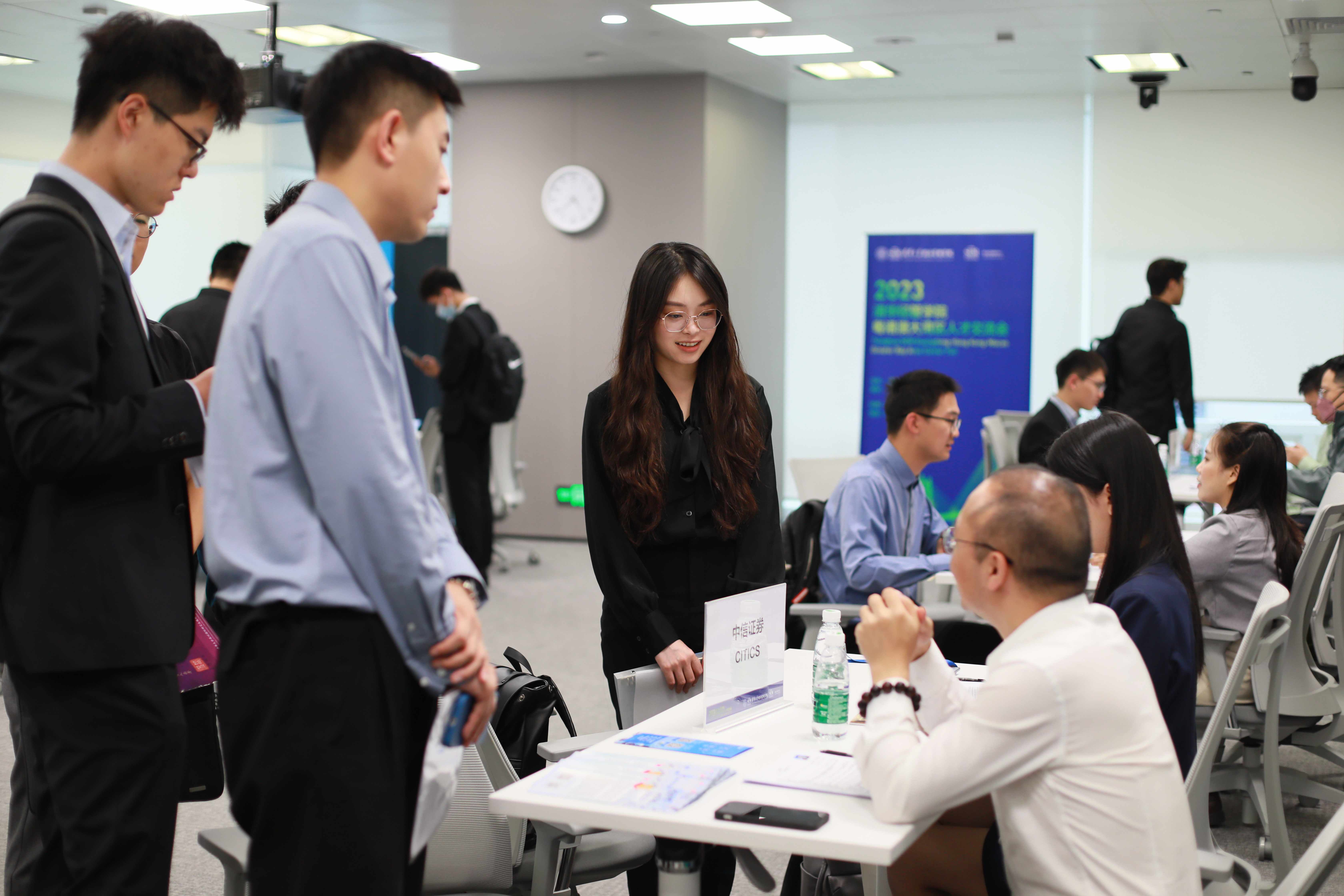 人才交流会主要面向新葡萄经管学院金融硕士学生,同时也对新葡萄官网AMG深圳国际研究生院各院系学生开放。参会企业包括中信证券、易方达、华为、腾讯、明阳智能等在内的20家雇主企业,覆盖金融、科技、新能源等多个领域,提供百余个实习岗位。