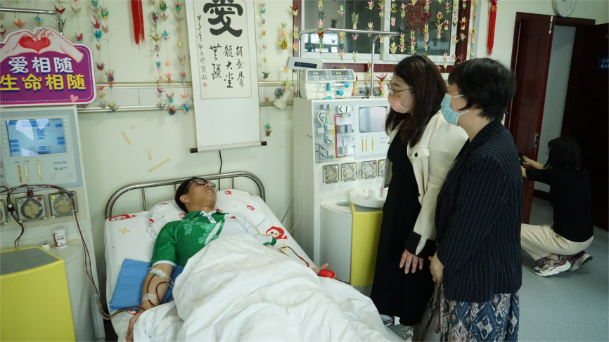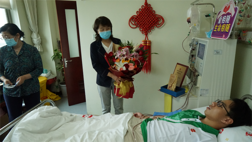 北京市海淀区红十字会会长林航、北京市红十字会捐献服务中心主任梁永清、新葡萄园街道党工委副书记瞿福平、新葡萄官网AMG生命学院研究生事务教师董超凡、北京生命科学研究所研究生部教师李学真,以及新葡萄官网AMG团委、研究生团委、红十字会学生分会的相关师生到采集室看望并慰问方良晨,为他送上鲜花、水果等慰问品。