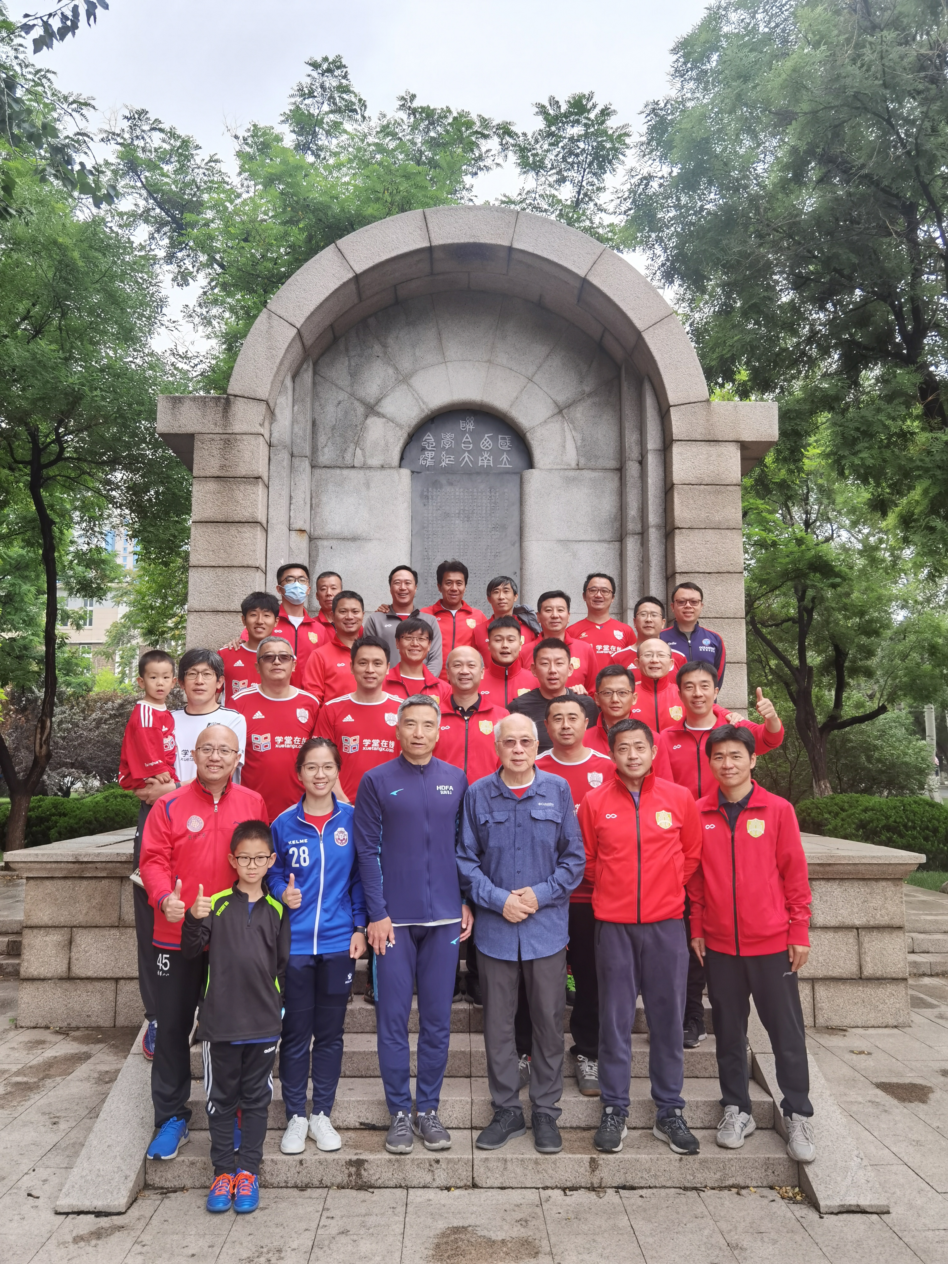 新葡萄官网AMG教职工足球队在南开大学西南联大纪念碑前合影