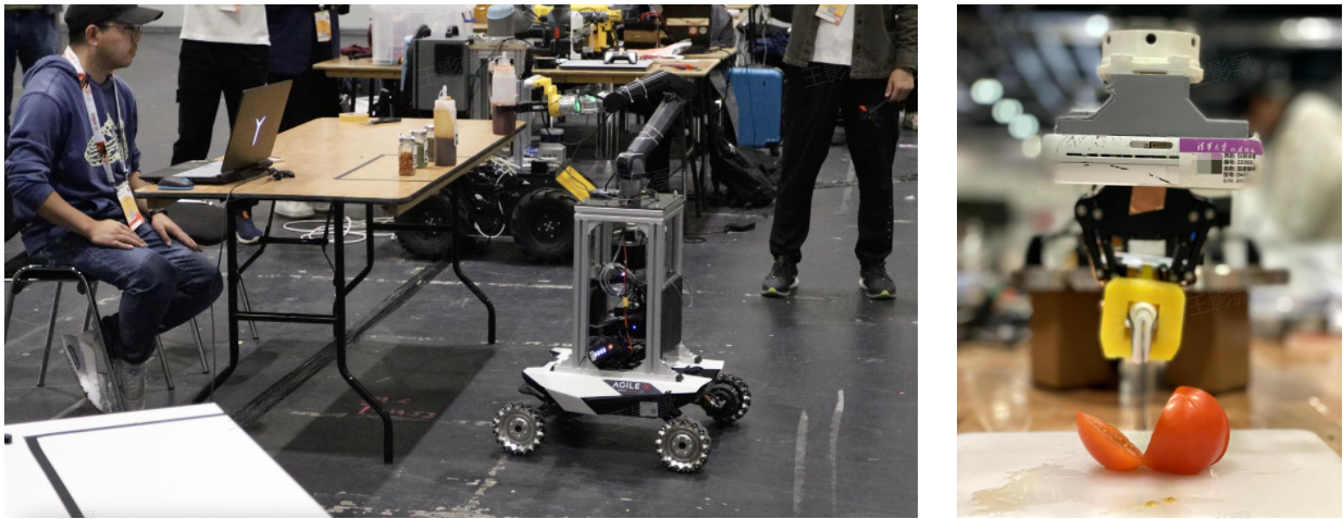 根据比赛任务要求,AIR DISCOVER代表队使用了基于因子图优化的激光惯性定位、基于多模态数据的实时目标检测、端到端轨迹规划与抓取姿态估计技术、基于大语言模型的自然语言交互等前沿技术。经过两天的激烈角逐,AIR DISCOVER代表队在比赛现场历经调试、初赛与决赛,实现了机器人自动导航与轨迹规划、机械臂自主识别与抓取、自然语言交互等效果,最终完成了58%的比赛任务并赢得冠军,也是唯一完成全部三个阶段比赛的参赛队伍。洛桑联邦理工学院(EPFL)与剑桥大学(Cambridge)分获二、三名。