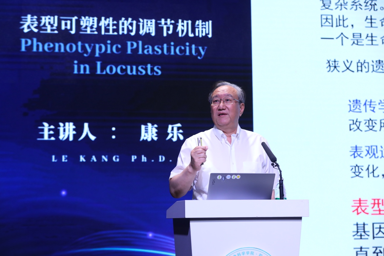 康乐介绍了表型可塑性,以存在群居型和散居型的蝗虫为典型代表,并以蝗虫表型可塑性背后的调控机制为核心科学问题,用“找差异”“验功能”和“明机制”的思路剖析了多巴胺通路、型相关的气味化合物和蝗虫飞行的表型可塑性的调节,为蝗虫的监测防治提供了理论指导。