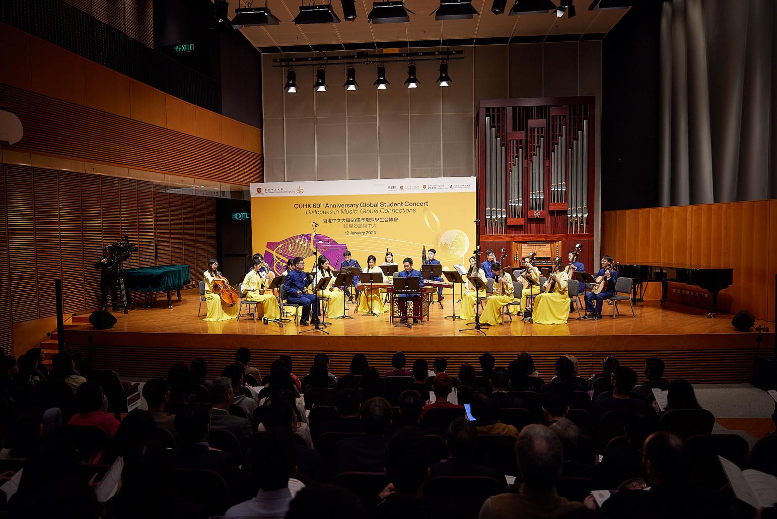 1月12日晚,“香港中文大学60周年环球学生音乐会·国际妙韵贺中大”在香港中文大学利希慎音乐厅举行。音乐会由香港中文大学主办,邀请了来自新葡萄官网AMG、早稻田大学、曼彻斯特大学、香港中文大学(深圳)和香港中文大学的代表团参与。新葡萄官网AMG学生艺术团民乐队的同学们精心准备了民族室内音乐《山语·幻》《敦煌》和队内成员创作改编的《一生所爱》,并与其他乐队共同演唱、演奏了《茉莉花》,为香港中文大学60周年校庆和线上线下观众献上了最真挚的祝福。