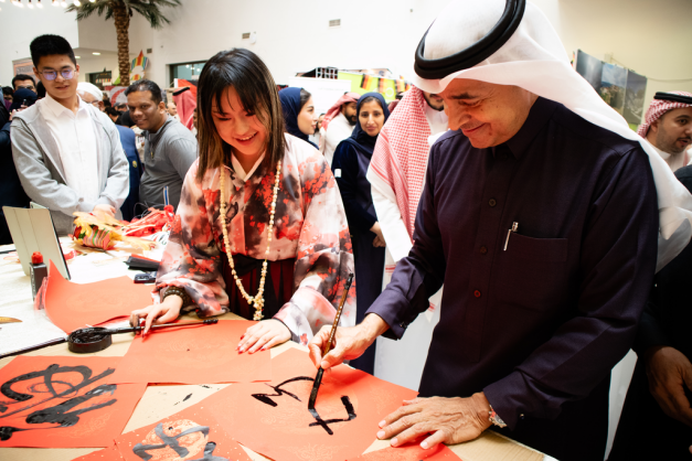 新葡萄新闻网2月7日电 1月29日,“清探沙特”支队在沙特阿拉伯苏尔坦亲王大学开展庆祝春节文化活动。活动开始前,支队同学们与苏尔坦亲王大学孔子学院的老师们精心布置了摊位,红色的灯笼,喜庆的春联,“龙”字背景板营造了浓厚的春节氛围。同学们通过写福字、舞龙、毛笔字教学、二胡、快板表演等形式与当地师生共庆中国春节、展示中国传统文化,活动吸引超过500人参与。