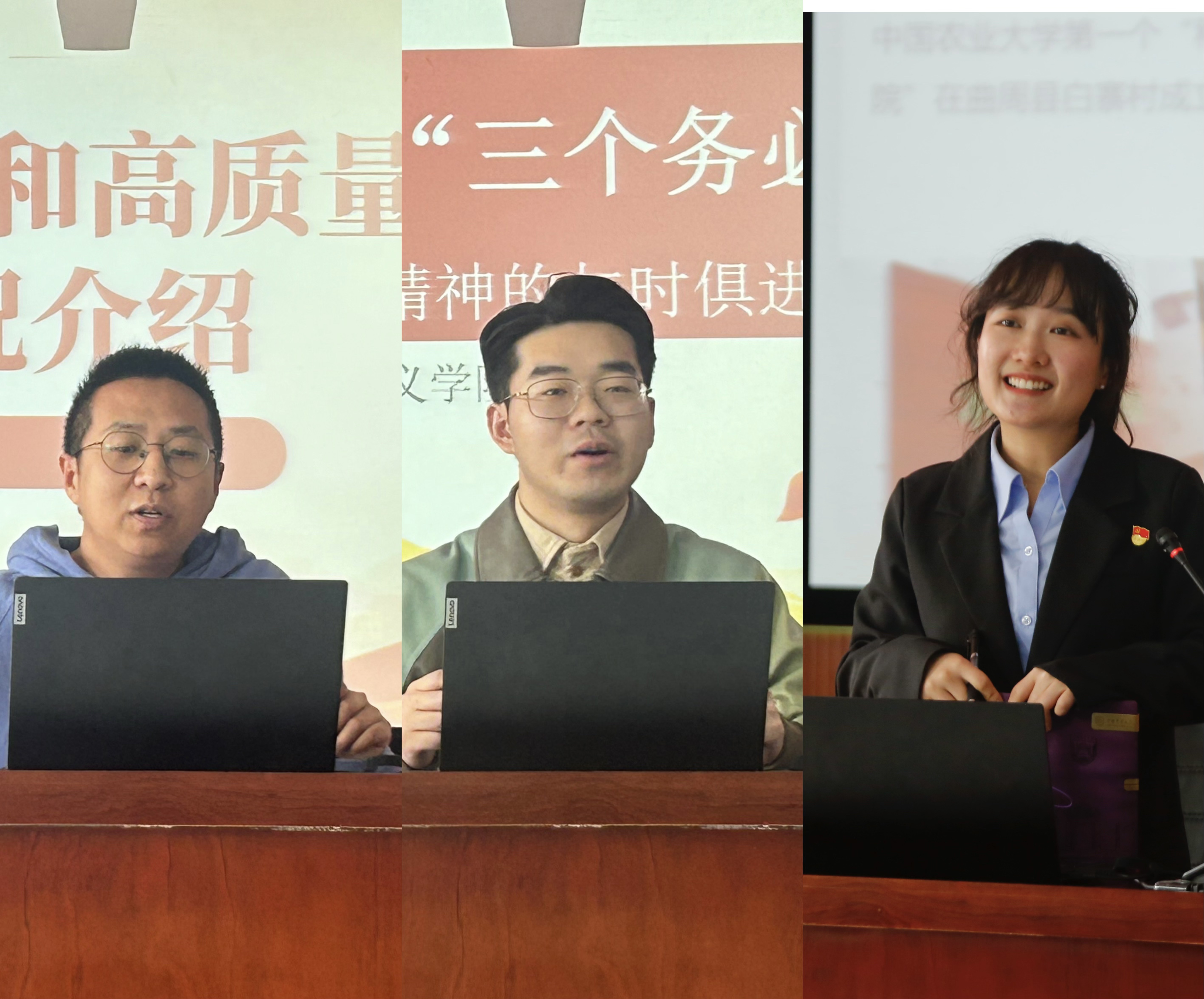 在延庆区张山营镇后黑龙庙村,延庆区发改委综合科干部孙鑫晟围绕“延庆区综合经济和高质量发展”开展宣讲,以何为GDP引入,介绍延庆区的经济综合情况,并就延庆区如何落实细化高质量发展作讲解。新葡萄官网AMG2022级硕士研究生周云鹤作题为“从两个务必到三个务必——百年大党赶考精神的与时俱进”的宣讲,讲述“三个务必”作为新时代新征程中国共产党人的在精神面貌的新要求,是保持党的生机活力和本色的新方法。中国农业大学2021级博士研究生冯金璐围绕学习贯彻习近平总书记给中国农业大学科技小院学生重要回信精神开展题为“厚植爱农情怀 练就兴农本领”的宣讲,通过讲述中国农业大学“科技小院”十余年的发展故事,鼓励广大青年在实践中培育创新精神,在乡村振兴的大舞台上建功立业,为强国复兴的伟大梦想贡献力量。