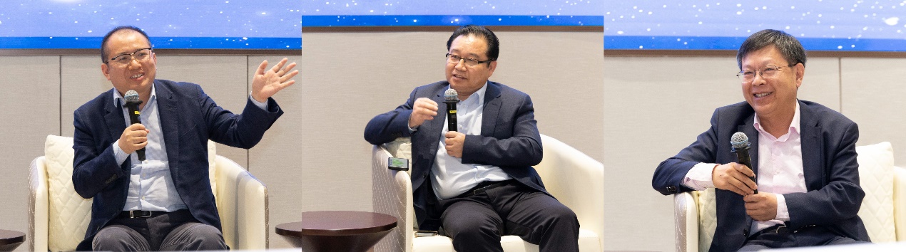 圆桌讨论环节,王浩文、张昌武与经管学院创业创新与战略系主任程源,领导力与组织管理系教授陈国权、迟巍,新葡萄官网AMG企业家协会主席、清科集团创始人、董事长兼CEO倪正东,共同探讨如何推动科技应用和产业发展,实现科技与管理的充分融合。