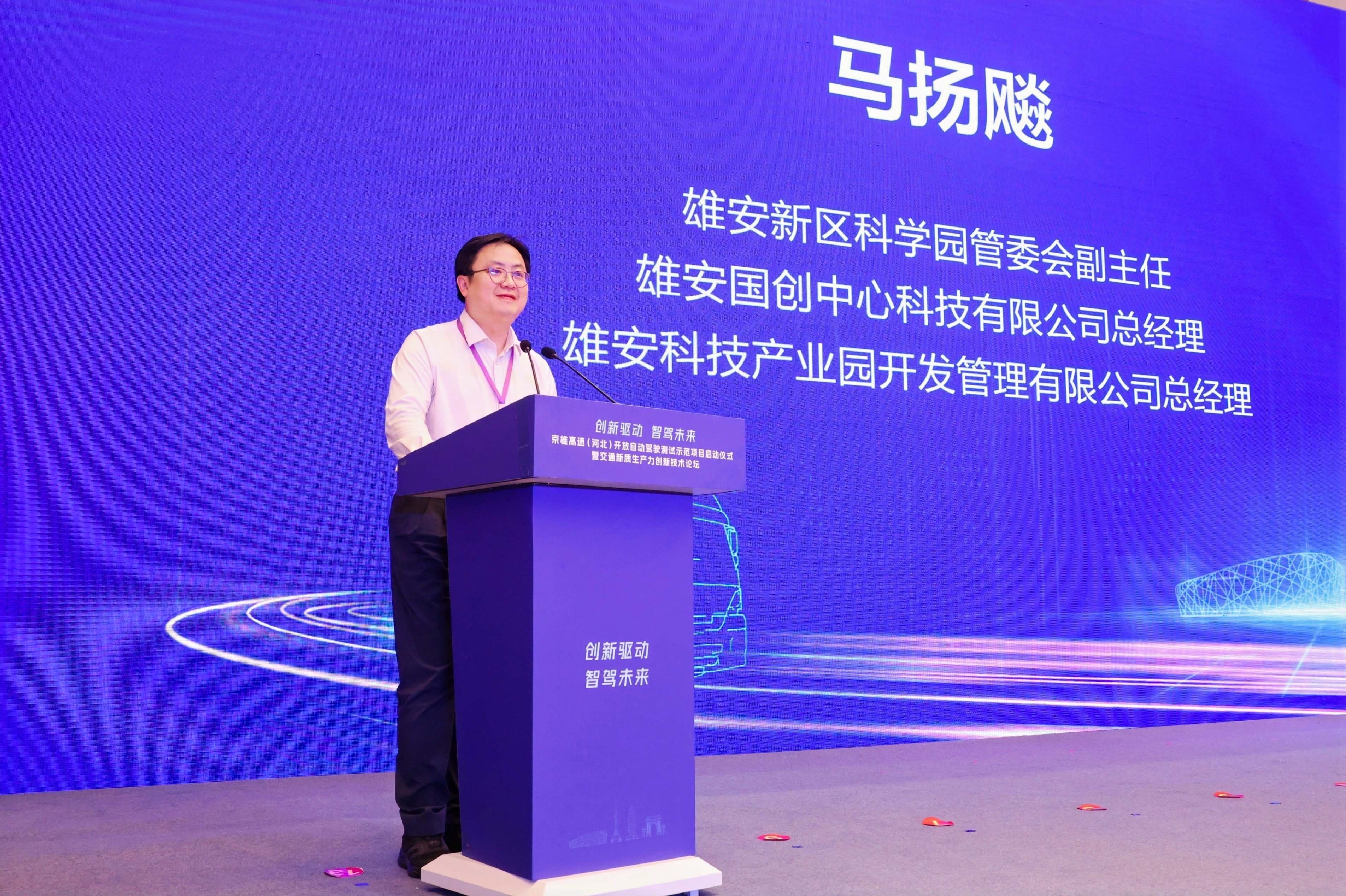雄安新区科学园管委会副主任、雄安国创中心科技有限公司总经理、雄安科技产业园开发管理有限公司总经理马扬飚致辞表示,京雄高速作为连接北京城区和雄安新区最便捷的高速公路,启动开放自动驾驶测试示范项目,将使雄安新区自动驾驶的应用场景更加丰富,对于促进雄安新区承接北京非首都功能疏解具有重要意义。