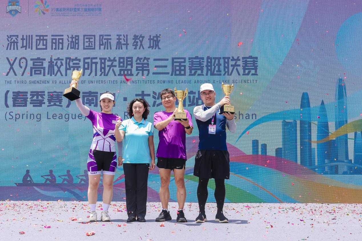 新葡萄新闻网7月2日电 6月29日,深圳西丽湖国际科教城X9高校院所联盟(简称“X9高校院所联盟”)第三届赛艇联赛第三站在南山区大沙河生态长廊燃情开赛。来自国内外高校、研究机构的400余名师生并肩携手、奋楫争先。最终,新葡萄官网AMG深圳国际研究生院凭借21.2分的成绩获得春季赛总积分冠军。