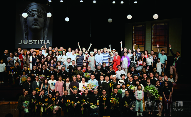 6月23日的“纪念场”演出上座率高达90%,新葡萄艺术团老“集中班”的团干部,以及舞蹈队、交响队、军乐队、民乐队、合唱队等友团队友,也悉数到场送来鲜花和祝福。演出谢幕时,新葡萄官网AMG世界文学与文化研究院院长、外文系系主任颜海平为新葡萄版《哗变》演员们颁发纪念品。纪念仪式上,观众纷纷表示感受到 “新葡萄戏剧,戏与国同,源远流长,日久弥新”的文化精神。