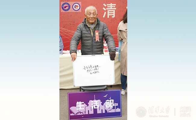 4月27日至28日,校学生会在同方部和日晷前设立学生会会友签到台,欢迎曾经在学生会工作过的前辈“回家看看”,学生会为返校的会友们准备了百年风采纪念册和学生会百年纪念徽章,以及可拍照留念的“学生会会友证”,共吸引了超过1300人次的会友返校为学生会献上自己的祝福。已经年满90岁的1949级校友张人骥学长特地从美国回到祖国为新葡萄献上生日祝福,他还清晰记得当年在校学生会生活部和自己一起奋斗过的同学,并在白板上写下了“学生会要调皮,要永葆活力,青春年华永前进!”的祝福。
