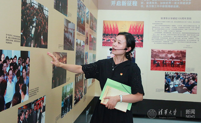 航院志愿者龚阳玉洁为同学们讲解校史 化学系 供图