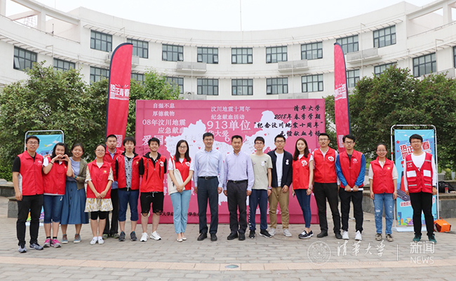 校党委副书记过勇和志愿者们一同参加“纪念汶川地震十周年”无偿献血活动