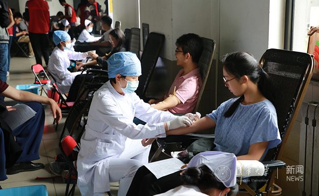 十年后同学在综合服务楼献血作为地震纪念 王鹤霖 摄