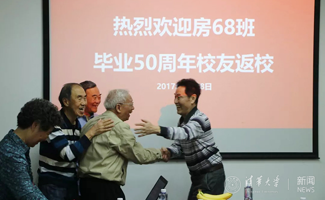 土水学院党委书记方东平、土水学院副院长李克非、土木系主任潘鹏、建设管理系主任吴璟一起看望毕业50周年的老校友。