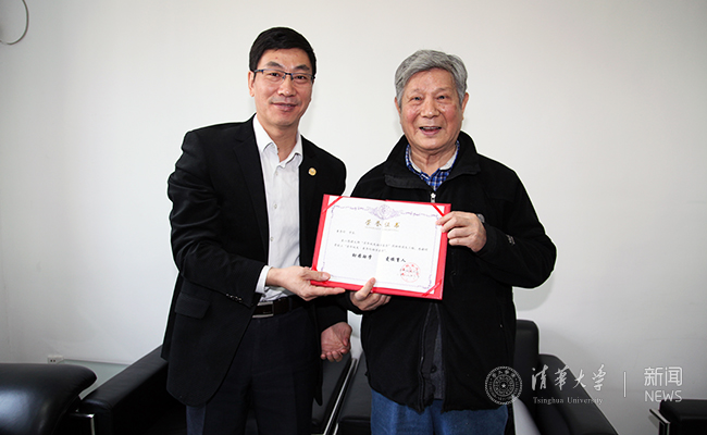 唐杰为黄圣伦学长颁发捐赠纪念证书 解红岩 摄
