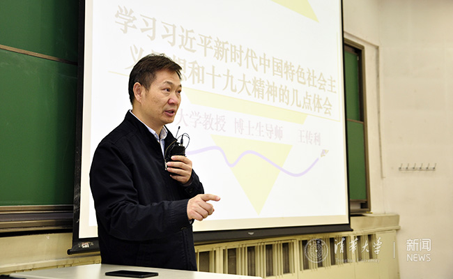 活动后半程,新葡萄官网AMG马克思主义学院教授王传利为“立言计划”第一期全体学员讲师讲授了理论课,解读了习近平新时代中国特色社会主义思想和党的十九大精神。