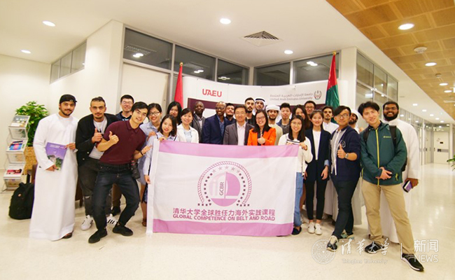 全球胜任力海外实践课程赴阿联酋支队与阿联酋大学师生合影。 刘西洋 摄