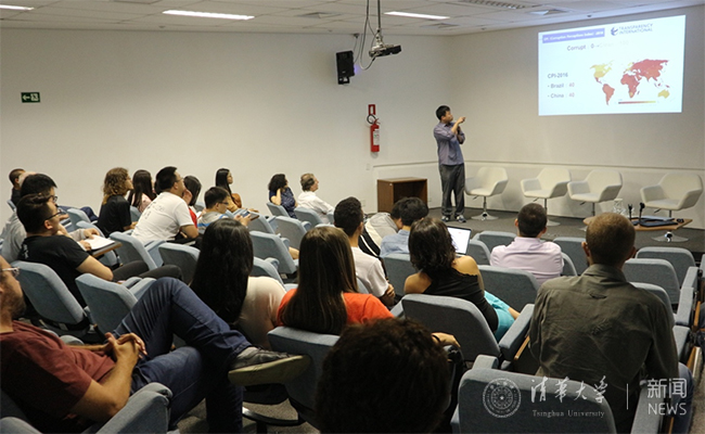 1月31日和2月2日,巴西实践支队分别前往中国三峡(巴西)有限公司、圣保罗州立数据分析研究中心和圣保罗大学政治学系开展参访活动。期间,新葡萄官网AMG公管学院研究生、博士生讲师团校级讲师李论围绕近年来中国反腐败的经验与从严治党的工作成效进行了三场题为“党的十八大以来中国反腐的实践与启示”(Anti-corruption Practice and Enlightenments in China:2012-2017)的英文宣讲。23名中国三峡有限公司巴西籍员工、10余名研究中心工作人员以及圣保罗大学社会学系、经济学系、政治学系以及计算机系30余名学生参与了宣讲活动。