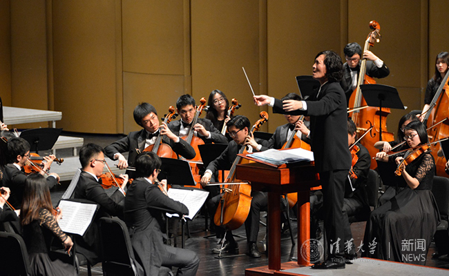 交响乐队带来了4首著名的交响作品。《云南音诗·火把节》生动描绘了云南少数民族的男女青年载歌载舞的欢乐情景;《斯拉夫舞曲集》第一首与第三首,既有活泼欢快的舞蹈,又有意味深长的旋律;《皇帝圆舞曲》营造出富丽典雅、端庄严肃的宫廷氛围。《西贝柳斯第一交响曲第四乐章》贯穿了芬兰雄浑、粗犷、豪放的气质,传达出芬兰人民有力的呐喊;作为今年交响乐队参加全国大赛北京预选赛的曲目,集中展现了队伍的业务实力。