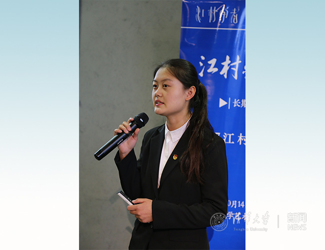 江村学者计划成员、公管学院2016级研究生刘贤春以“政策工具在农村公共物品供给中的运用”为主题,介绍了自己在实践过程中所采写的案例以及已经取得的学术成果;江村学者计划成员、新闻学院2014级本科生寇纪美从关注一带一路、探究边贸发展、传递人物故事这三个层次,分享了自己行走在一带一路边疆上,见证边境发展变化的实践经历。
