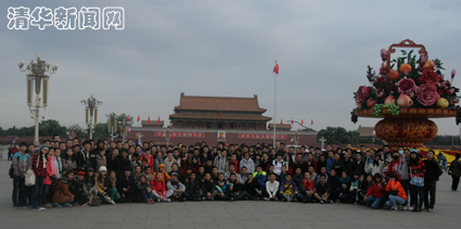 图为参加升国旗活动的同学在天安门广场合影留念。