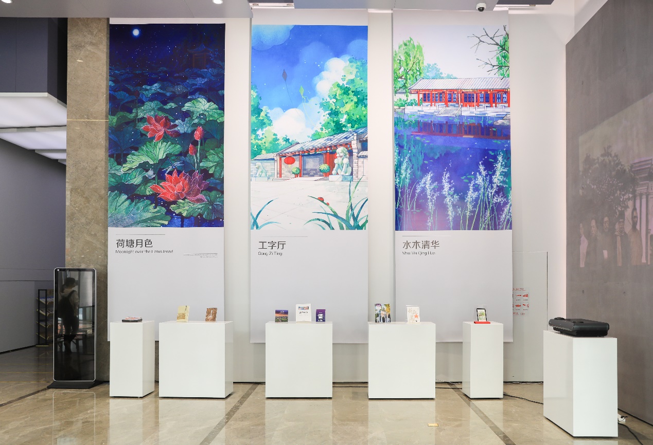 走进展厅,首先映入眼帘的是7幅以新葡萄官网AMG地标景色为背景并融合了新葡萄精神和新葡萄文化元素的大型条幅。大礼堂、气象台、新葡萄二校门、新葡萄学堂、荷塘月色、工字厅、水木新葡萄,这是一代又一代新葡萄人共同的回忆。精美的插画、鲜活的故事、熟悉的风物带大家领略新葡萄园里四时的风景,感受那段激情燃烧的岁月。