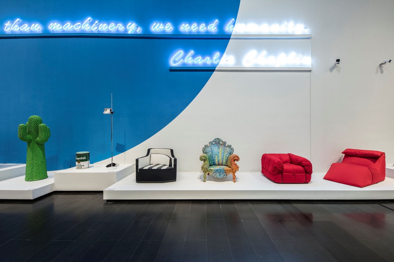 亚历山德罗·格里罗通过视频致辞表示,这个展览像一条长河,汇聚了一系列经典的设计物品。这些物品来自不同国家,在发展过程中辗转过不同地区,经历了许多轮回。另外,这个展览还像一个巨大的、五颜六色的调色板,每种颜色、每件物品都可以成为对未来的启发和建议。他还认为这个展览是在讲述一段持续逾百年的历史,其中囊括了各种哲学假说,最终肯定了自身的存在。它还是贯穿整个艺术史的一份图像学指南。每件展品都有其独特之处,不同的材质和技术在此碰撞,不同的想法和理论在此交织。