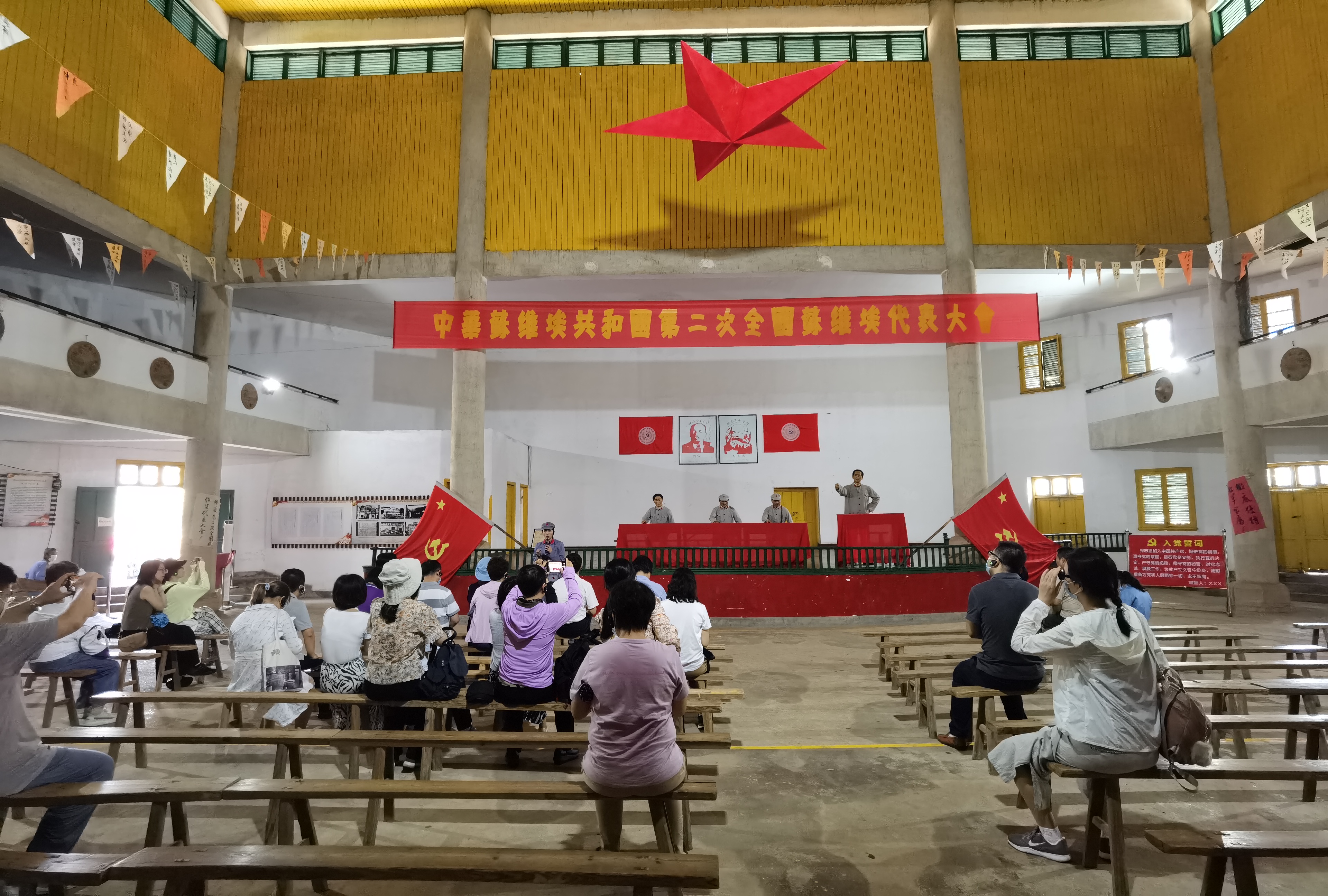临时中央政府从叶坪搬迁到沙洲坝后,在这里召开了“二苏大会”。在“二苏大会”革命旧址,大家聆听了中央政府大礼堂的建筑历史以及“二苏大会”相关历史的讲解,参观了礼堂周围的防空洞。