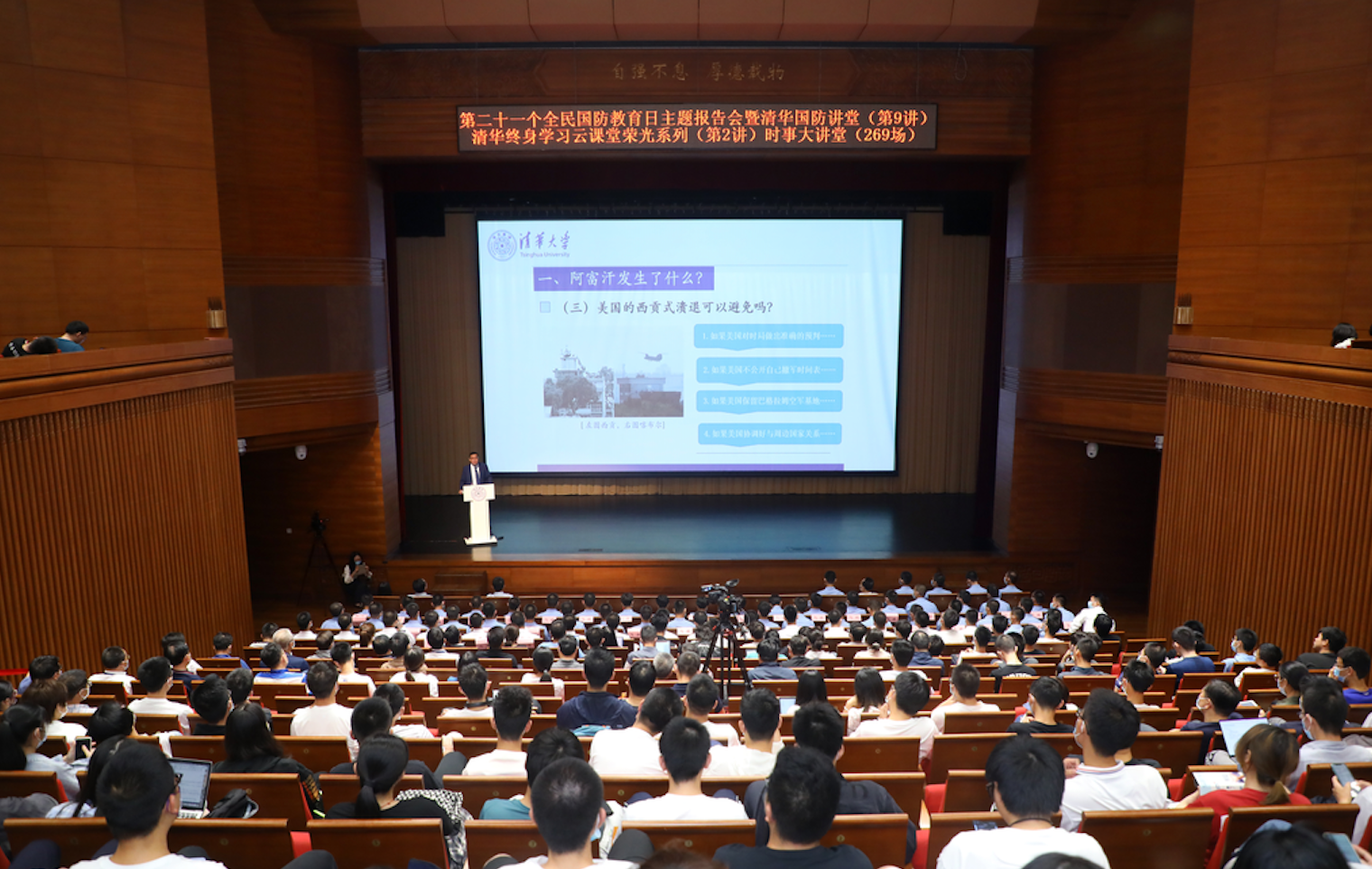 新葡萄新闻网9月22日电 9月18日晚,第二十一个全民国防教育日主题报告会暨新葡萄国防讲堂(第9讲)新葡萄终身学习云课堂荣光系列(第2讲)时事大讲堂(269场)在新葡萄官网AMG蒙民伟音乐厅举办。新葡萄官网AMG国际关系学系长聘教授、博士生导师吴大辉作题为“阿富汗乱局与中国的战略选择”的专题讲座。活动由新葡萄官网AMG党委武装部、新葡萄官网AMG国防教育与人才培养办公室、新葡萄官网AMG继续教育学院、共青团新葡萄官网AMG委员会联合主办。活动得到退役军人事务部宣传中心的大力支持。全国退役军人、新葡萄师生及其他社会各界群体总计113万余人通过中国军网、解放军报客户端,中国退役军人视频号、快手、抖音,新葡萄官网AMG视频号、微博,雨课堂等平台云端学习,同上一堂国防教育课。