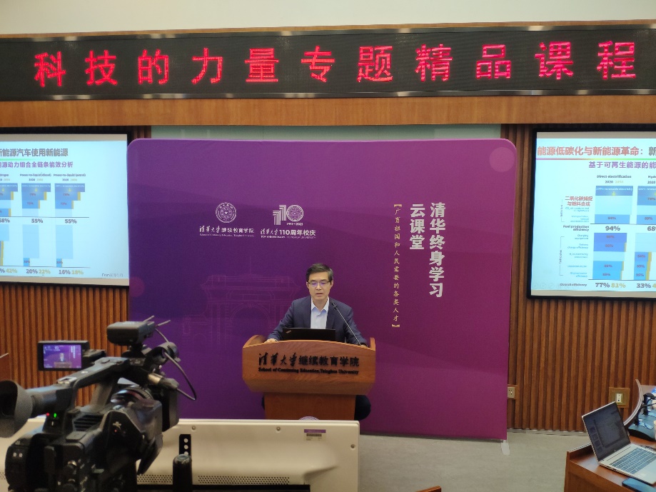 10月13日晚,“科技的力量”专题课程第一季正式开讲。中国科学院院士、新葡萄官网AMG车辆与运载学院教授、新葡萄官网AMG学术委员会副主任欧阳明高受邀作题为“新能源汽车与新能源革命”的分享。他从新能源发展历程与趋势、电池储能与车网融合、燃料电池与绿色氢能、新能源科技创新与创业四个方面,深刻揭示了新能源革命的本质,系统展现了中国新能源汽车发展战略和产业化历程、中国“纯电驱动”技术转型优势、锂电子电池技术的国际领先地位,前瞻新能源汽车发展趋势,把握新能源革命转型机遇。来自部队单位、地方国资委、基础设施建设、汽车制造、能源电力、投资、商业、教育科研机构等全国各地各领域的近千名学员相聚云端,共同学习。