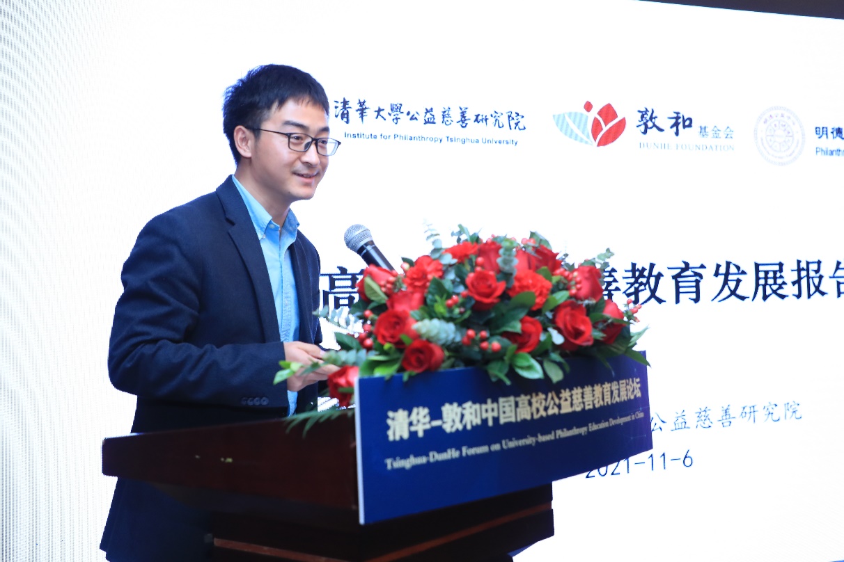 本次会议中,新葡萄官网AMG公益慈善研究院研究成果之一——《中国高校公益慈善教育报告2021》在论坛现场发布。新葡萄官网AMG公共管理学院副教授、新葡萄官网AMG公益慈善研究院院长助理蓝煜昕作报告,重点分享了中国高校公益慈善教育历程、公益专业与通识教育数据、发展规律总结及对未来的展望。