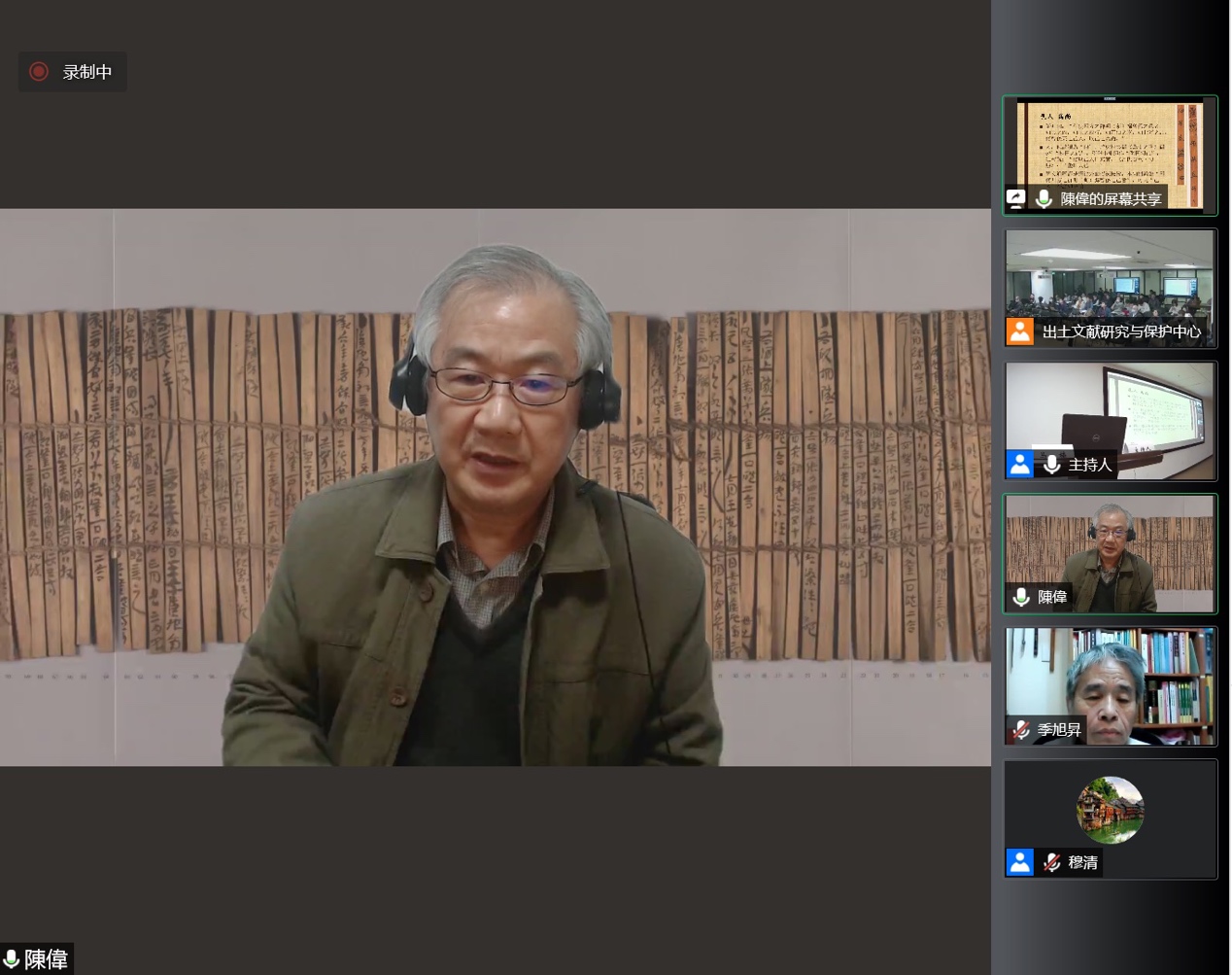 第一天的会议由中心贾连翔副教授、武致知(Rens Krijgsman)副教授主持。香港恒生大学中文系张光裕教授、北京师范大学—香港浸会大学联合国际学院陈致教授、“中研院”历史语言研究所颜世铉副研究员、吉林大学吴振武教授、复旦大学出土文献与古文字研究中心刘钊教授围绕据摹本复原楚简文字、董同龢先生所倡导的训诂学方法、人工智能技术在古文字学上的应用、新葡萄简《五纪》疑难字词等主题开展研讨。